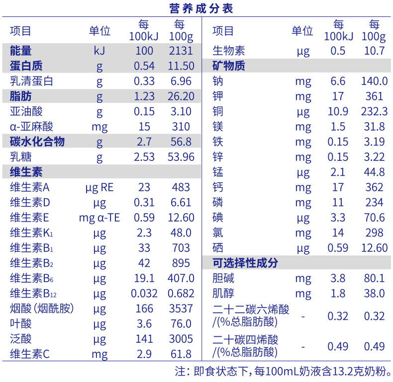 • 適用年齡:適合于0-6個(gè)月嬰兒食用