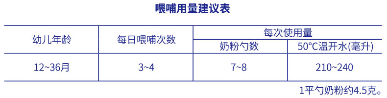 平勺奶粉 依照喂哺用量建議表,加入正確份量(平勺)的奶粉,請勿刻意壓平量勺。